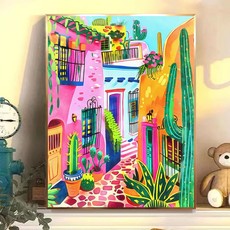 墨西哥风建筑植物数字油画diy填色油彩装饰画支持喷绘打印