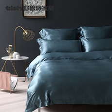 家居 家纺深蓝桑蚕丝床上四件套欧式真丝套件床单被套